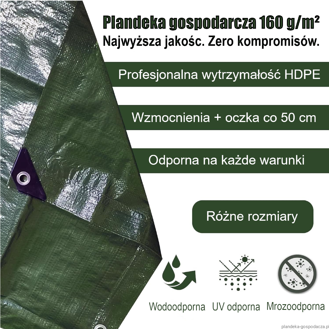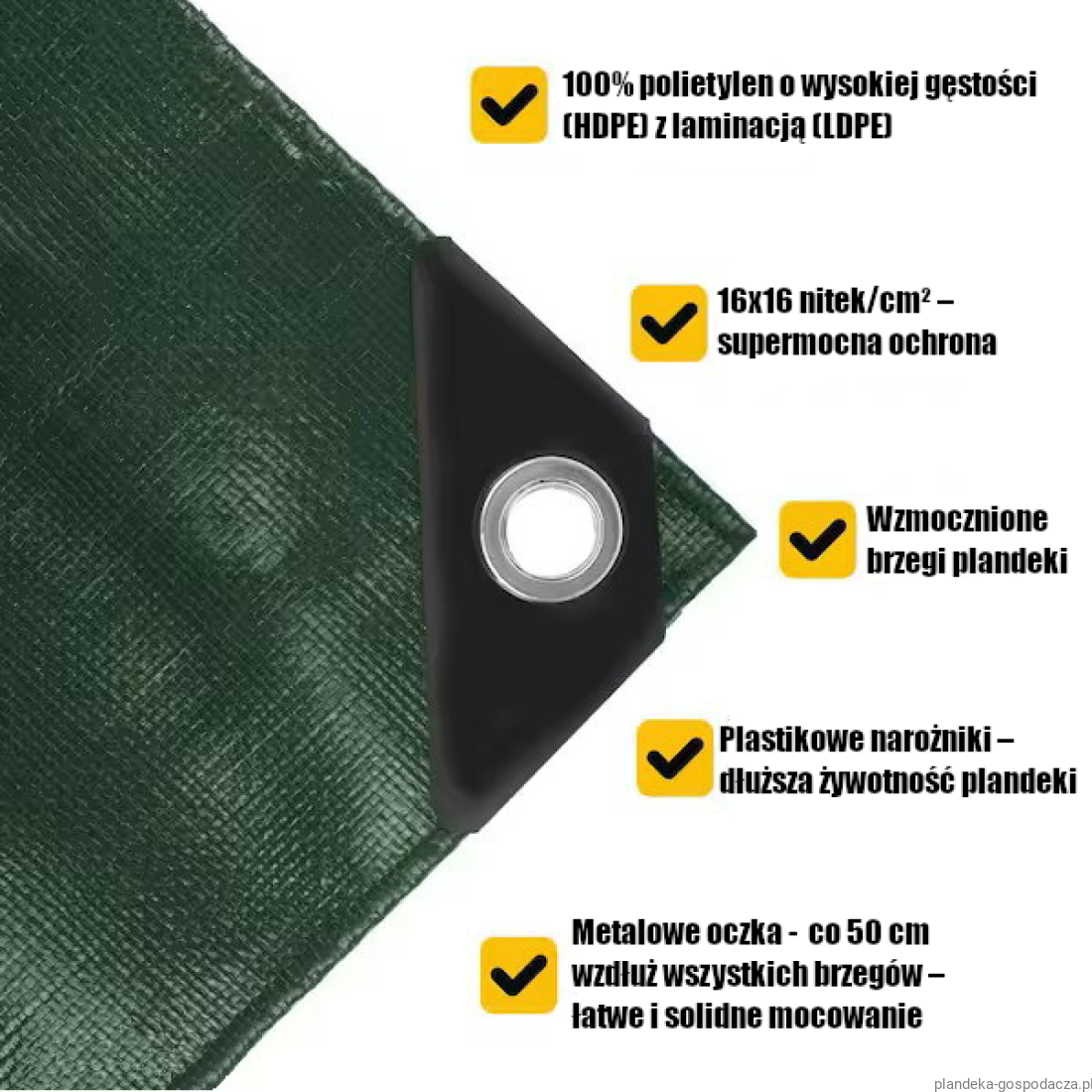 - Oczka mocujące co 50cm wzdłuż każdej krawędzi
